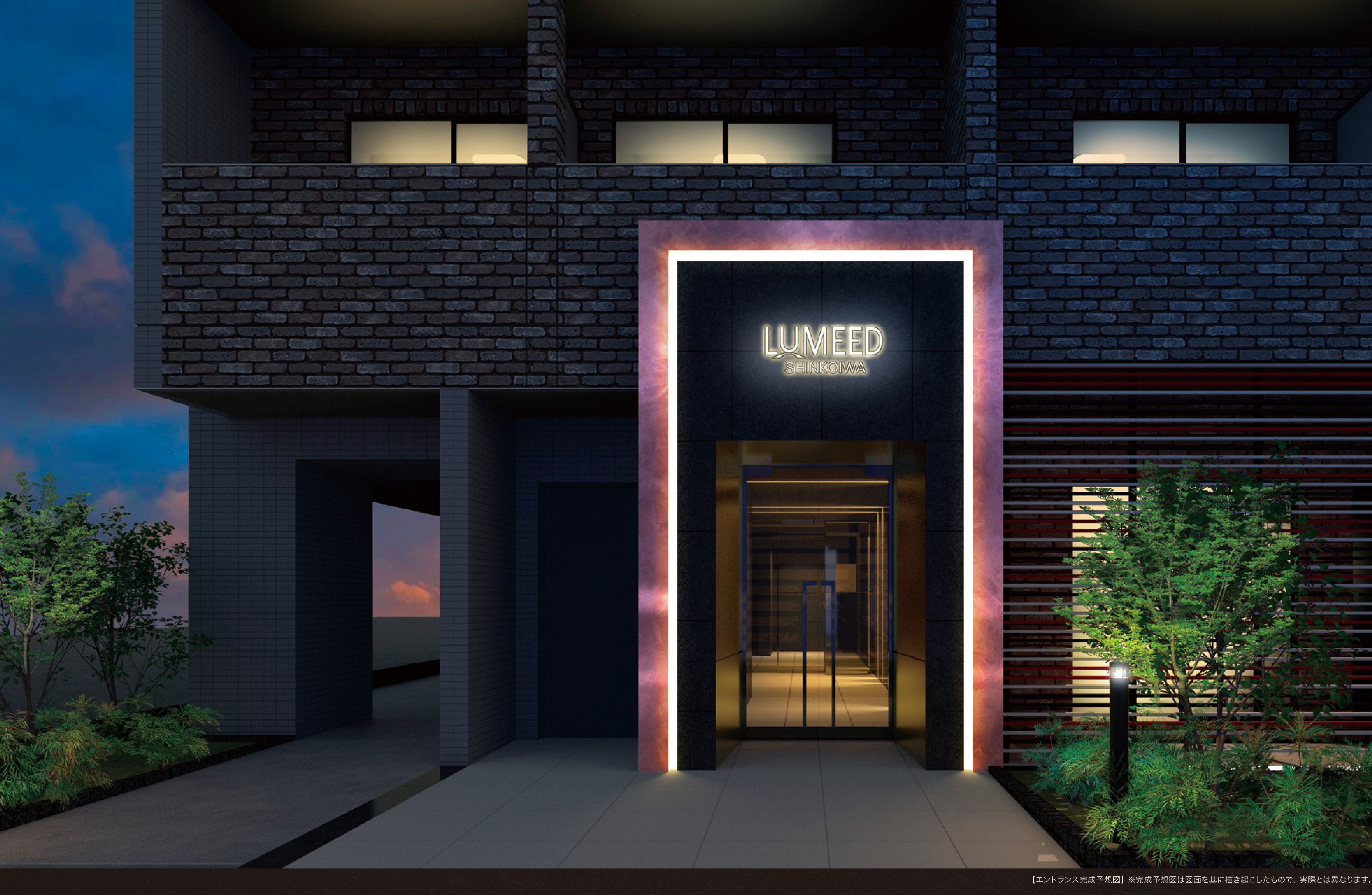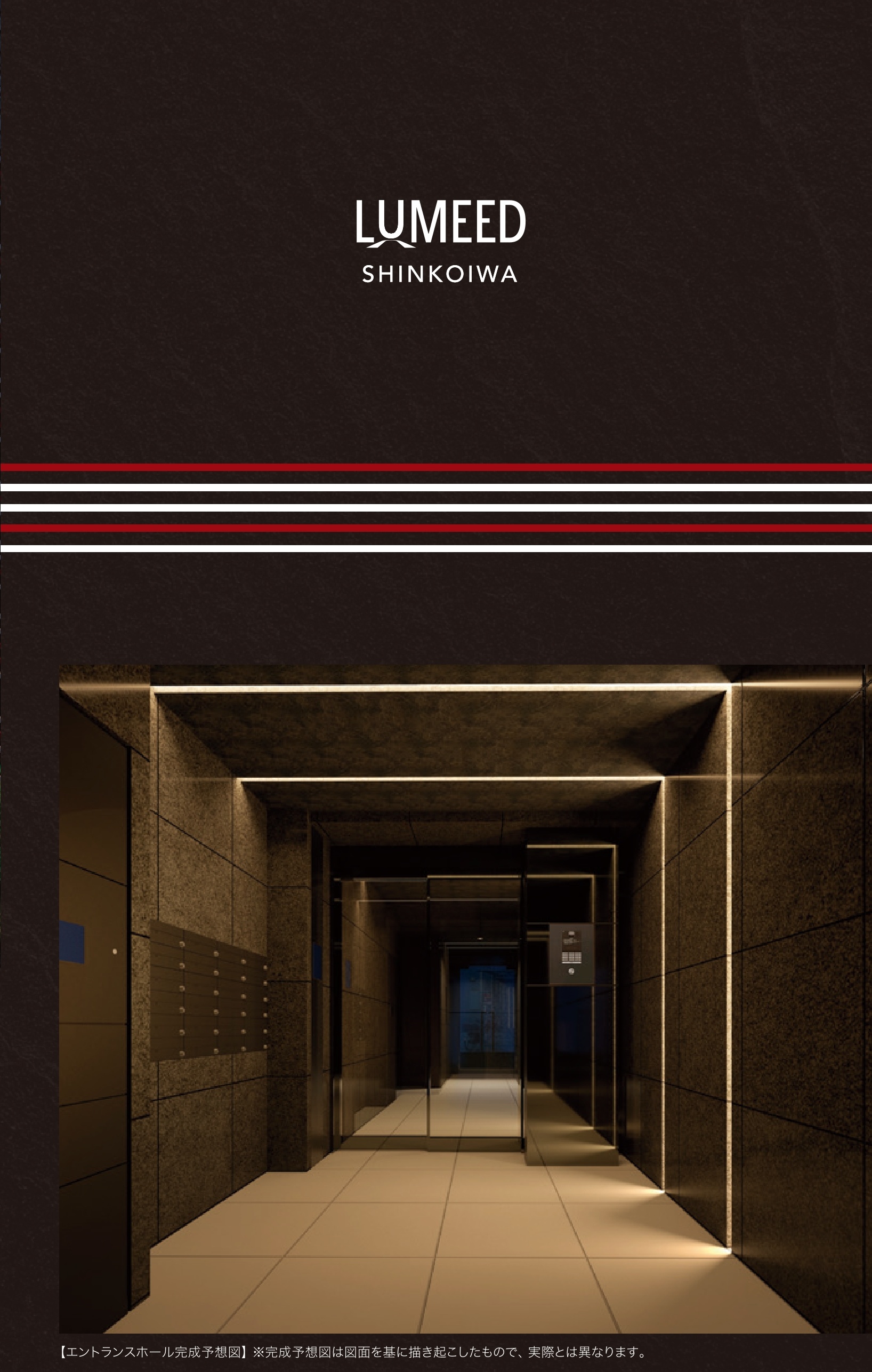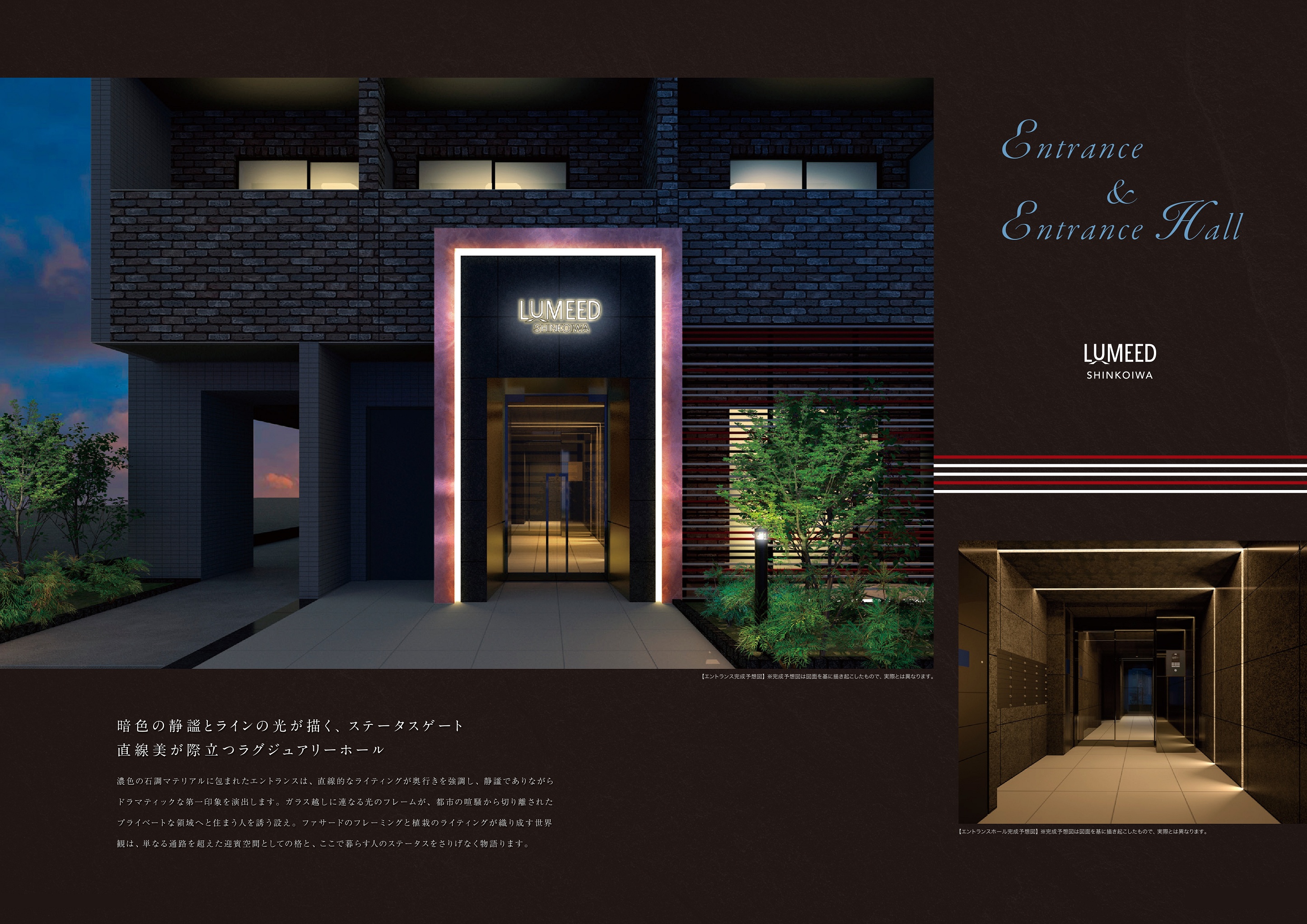 暗色の静謐とラインの光が描く、ステータスゲート 直線美が際立つラグジュアリーホール